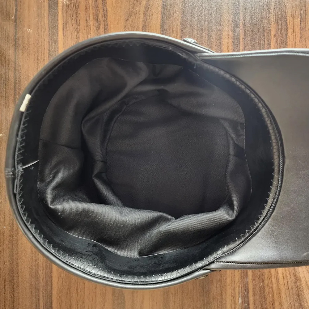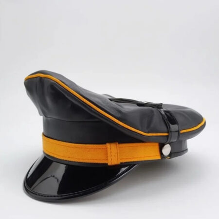 Featuring the traditional forward-slanted crown, flat circular top, and short polished visor, this leather forage cap maintains authentic proportions while offering enhanced durability and long-lasting structure. Whether you’re dressing for a historical portrayal, theatrical production, or alternative fashion look, this black leather kepi delivers authority and presence.