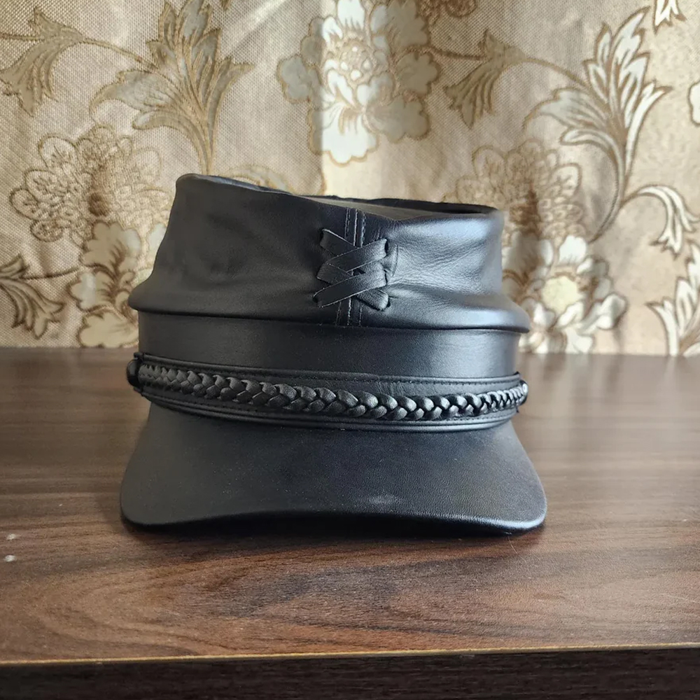 Add commanding character to your wardrobe with this Premium Black Leather Kepi Hat, a bold reinterpretation of the classic Civil War–era military forage cap. Expertly handcrafted from genuine black leather, this kepi blends historic military structure with modern edge, making it ideal for reenactments, steampunk styling, gothic fashion, and statement streetwear.