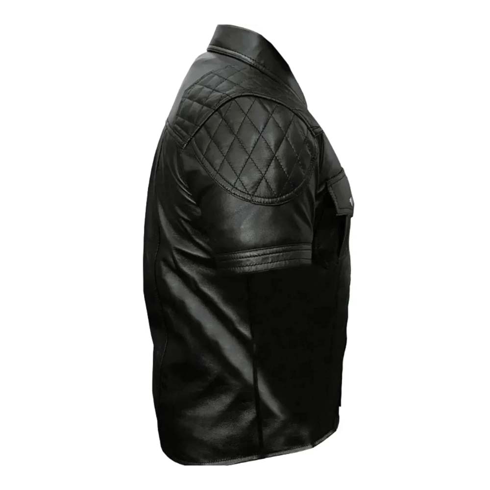 Real leather tells a story — and this shirt is built to become better with wear. As the material softens and conforms to your shape, it enhances mobility while maintaining its bold, masculine form. A uniform-inspired design with quilted sleeves adds a rugged edge, while the front button closure keeps the look clean and timeless.