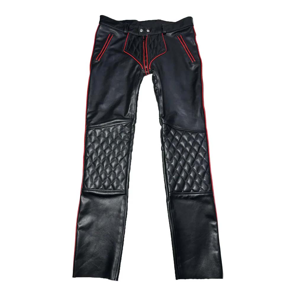 Designed for men who demand both functionality and fashion, the slightly wider cut pairs perfectly with boots, creating a sleek, balanced silhouette. Cargo-inspired side pockets add practical storage, while padded panels and zipper accents elevate the rugged, edgy appeal. Versatile and durable, these leather pants are ideal for festivals, club nights, casual outings, or any occasion where bold fashion is required.