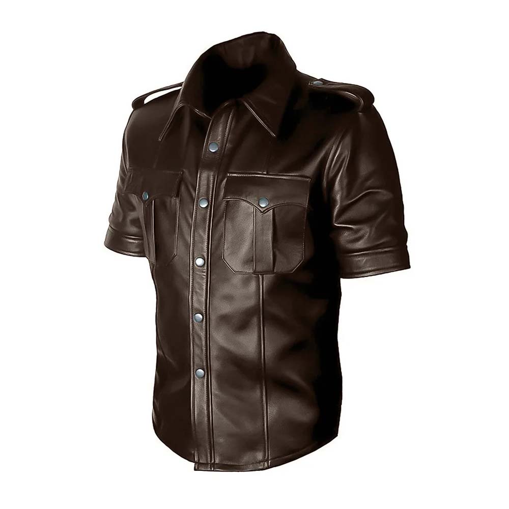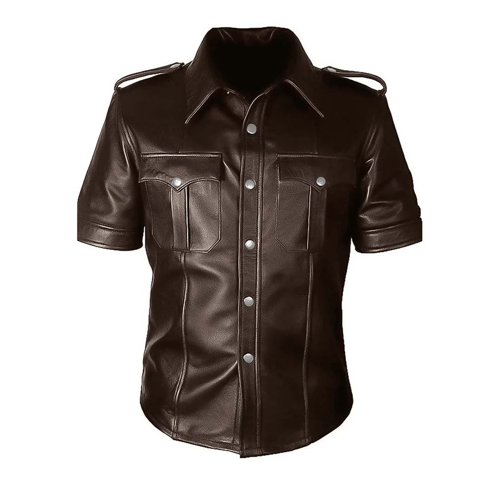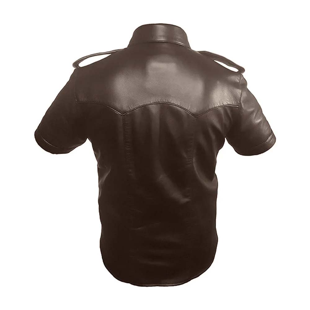 Featuring a button-front closure, police-inspired chest pockets, and shoulder epaulettes, this uniform-style leather jacket presents a clean, professional silhouette. The tailored cut enhances the upper body while allowing ease of movement, making it ideal for both casual and styled outfits.