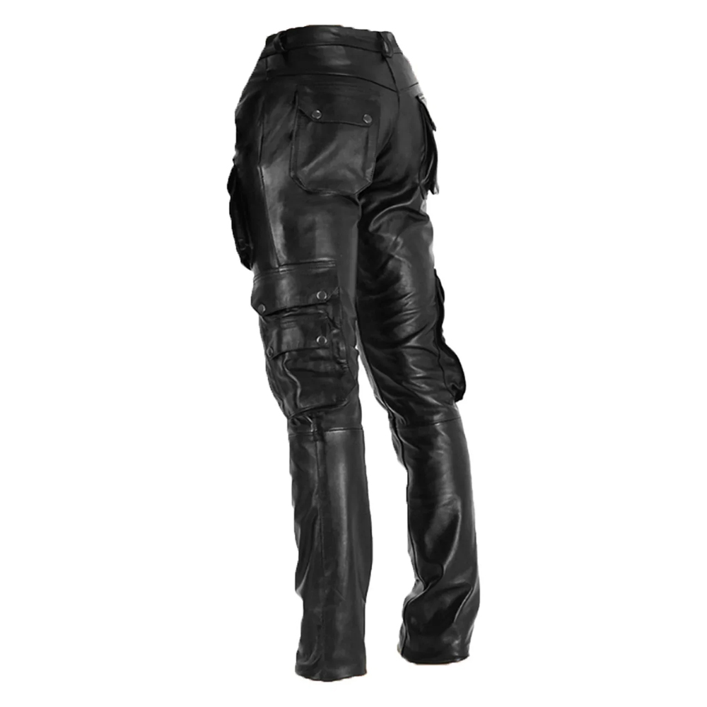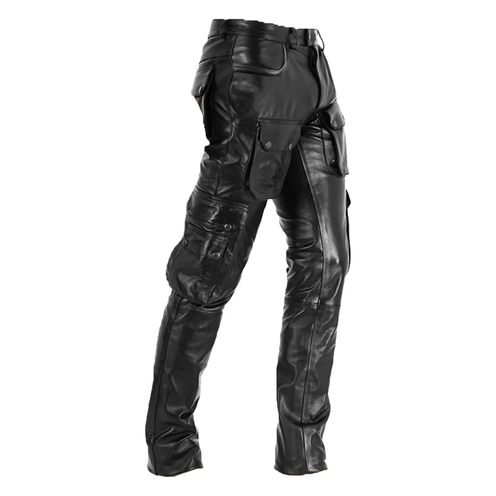 Upgrade your wardrobe with these men’s black leather cargo biker pants — the perfect combination of rugged durability, premium leather, and standout street style.