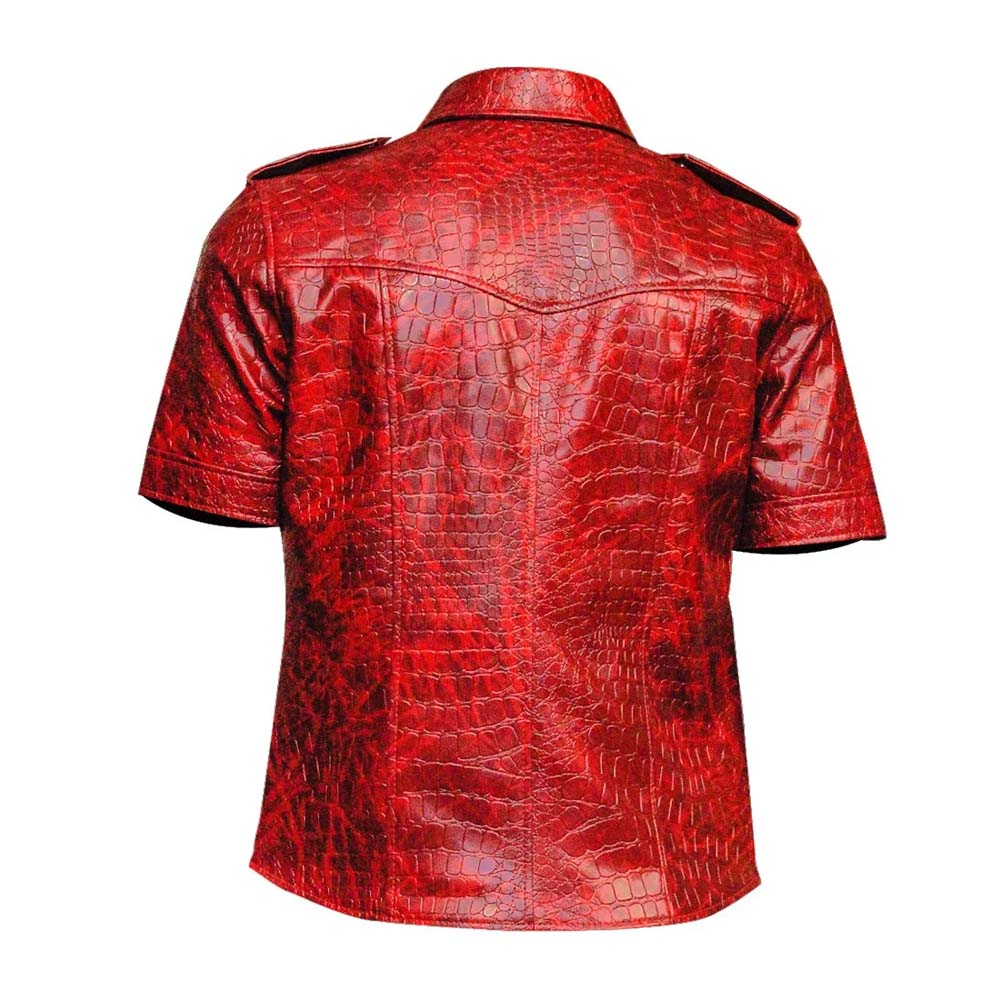 Constructed from premium crocodile-pattern leather, this shirt delivers a luxurious, tactile texture that immediately draws attention. The vibrant red hue adds energy and confidence, perfect for men who want to turn heads, make an impact, and express their personal style.