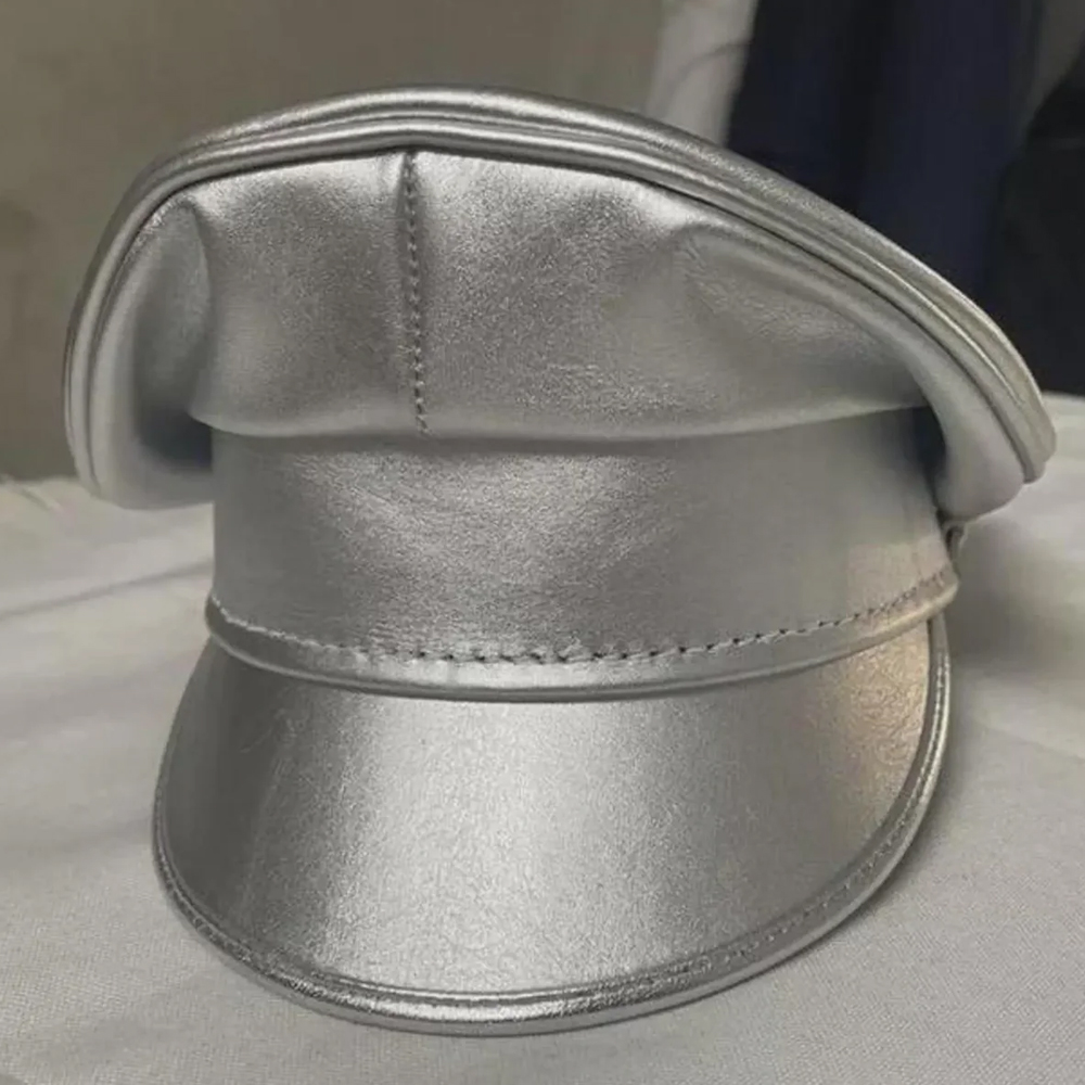 Whether worn for biker fashion, pride events, cosplay, festivals, alternative streetwear, or vintage-inspired styling, this silver leather cap adds a distinctive edge to any outfit.
